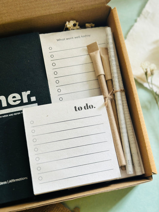 If you’re looking for gift ideas that are special and meaningful, our Handmade Paper Gift Hampers are the perfect choice! Each Handmade Paper Gift Box is filled with beautiful, eco-friendly, and unique handmade paper products. These hampers are great for any occasion, whether you want to celebrate a holiday, say thank you or show someone you care. With our handmade gift hampers, you can share your feelings in a thoughtful way that will make anyone smile.